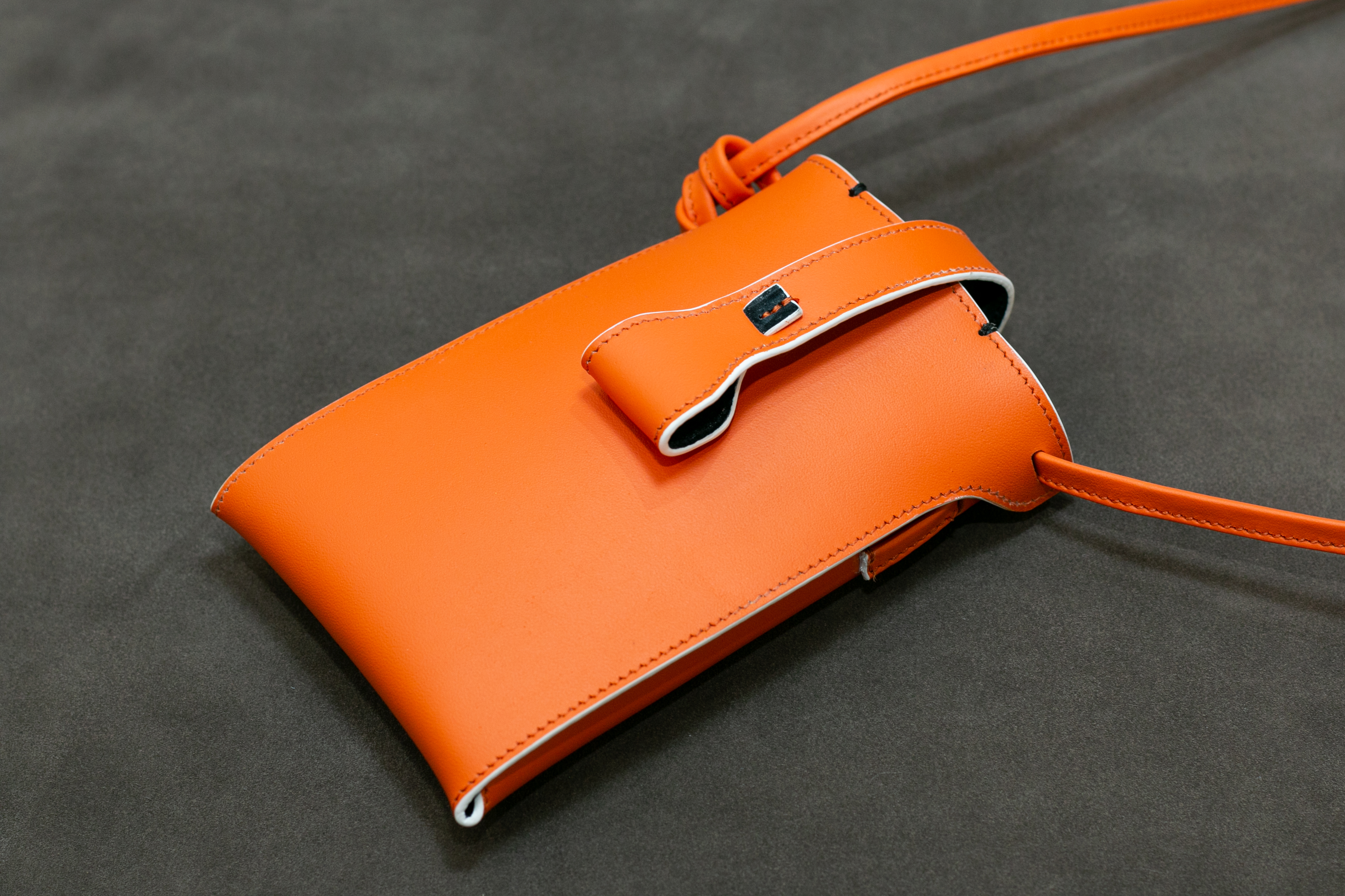 .客製化:鉻鞣亮橘色牛革 & 白色油邊