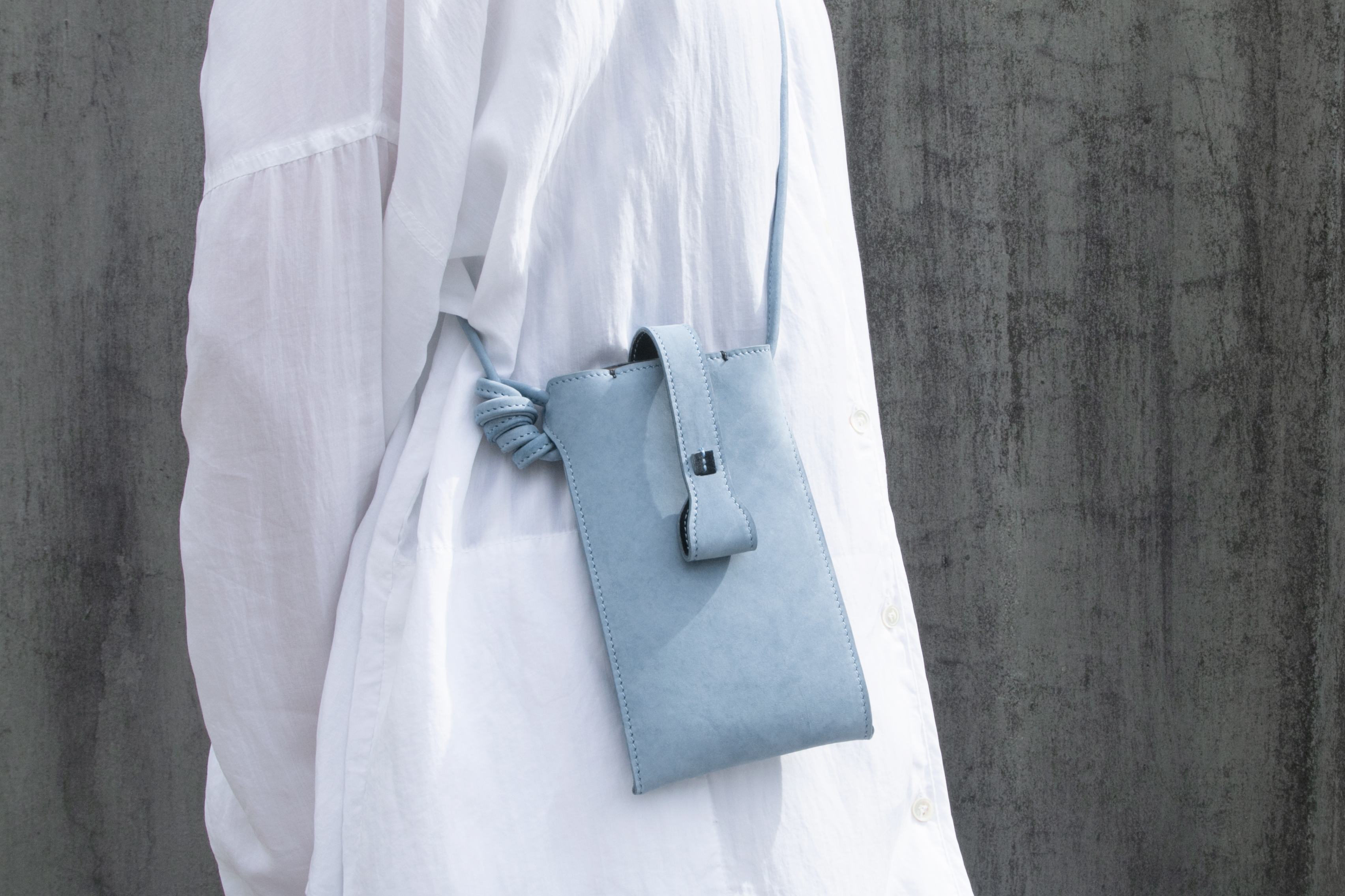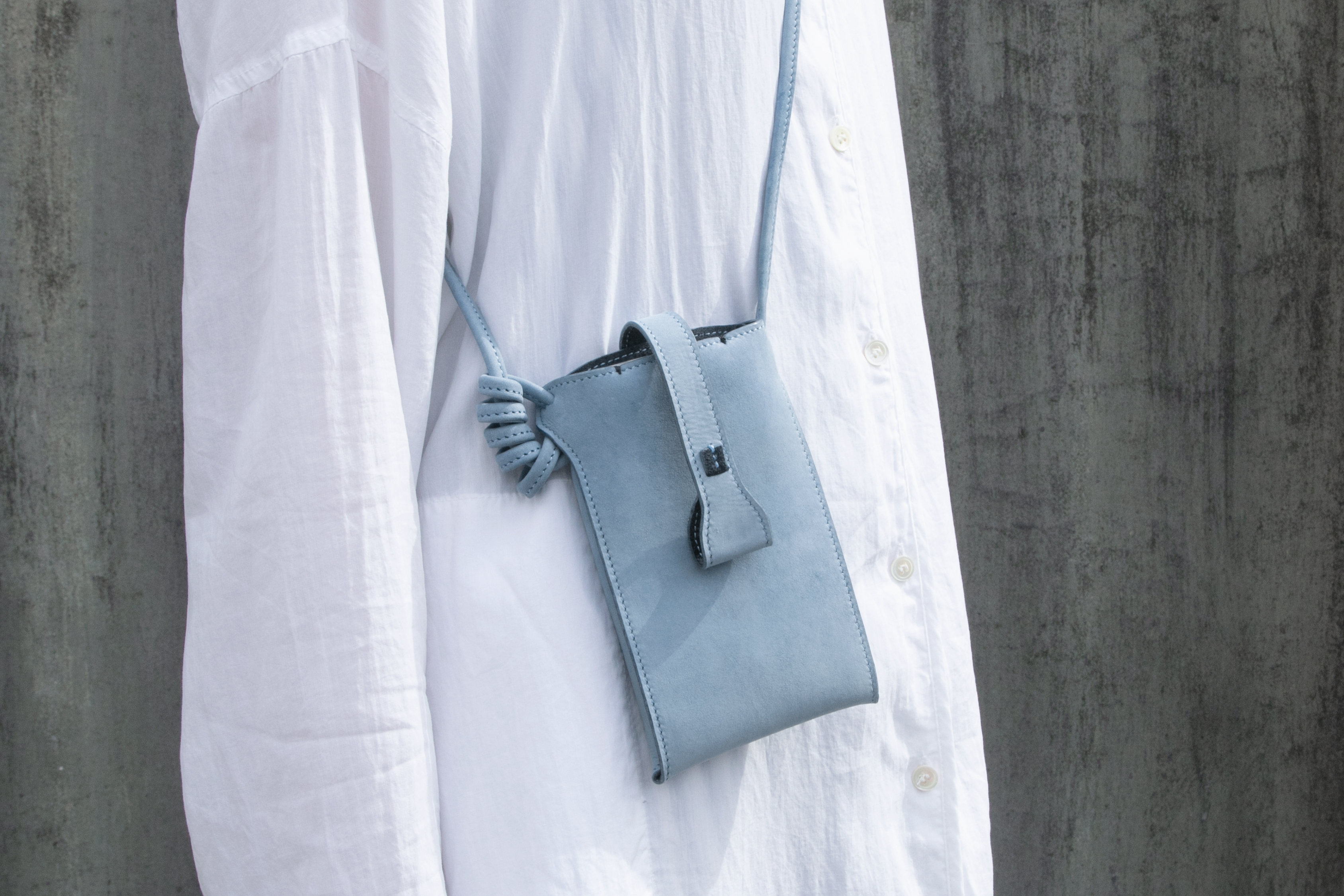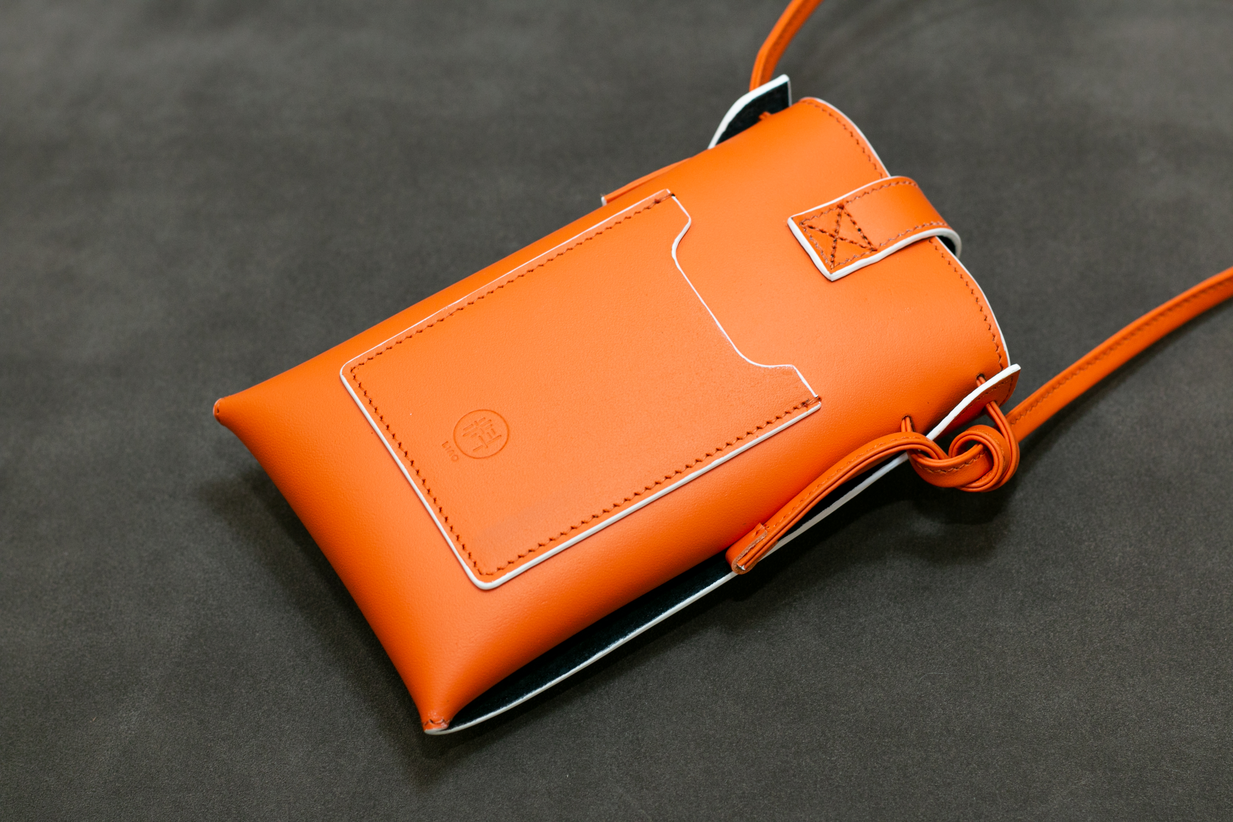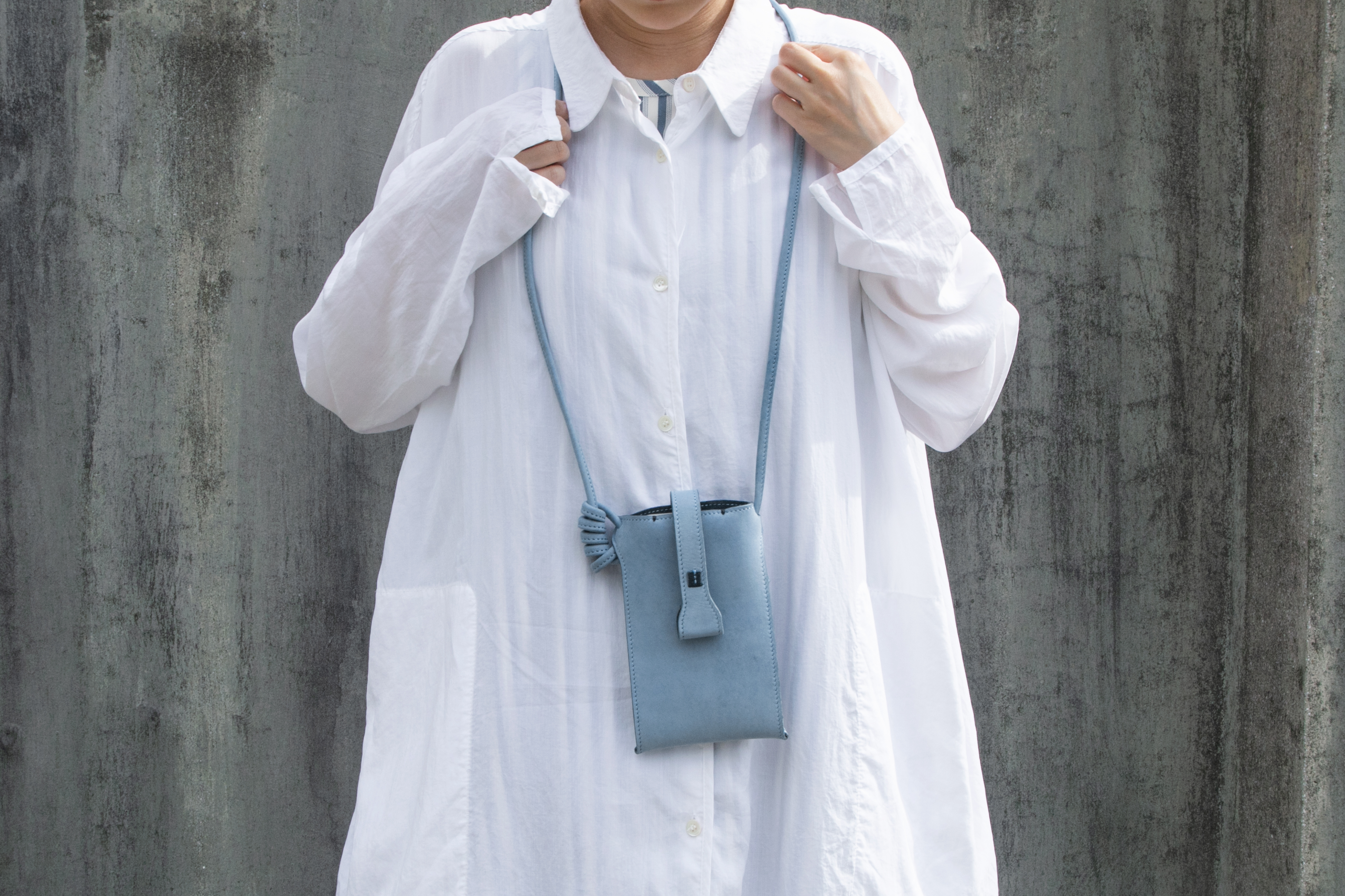 提供單件訂製的肩背手機包,輕便、方便拿取手機。背面可裝感應卡,上捷運、上公車、感應卡片超方便。