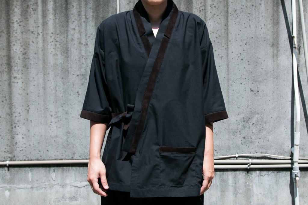 這次很榮幸幫喜歡的餐廳設計製作日料作務衣及店徽,老闆穿著「戰袍」使專業度也提升不少,日料作務衣使用磨砂革小羊皮點綴, 一般穿著後正常洗滌不要烘乾即可,無需特別保養。