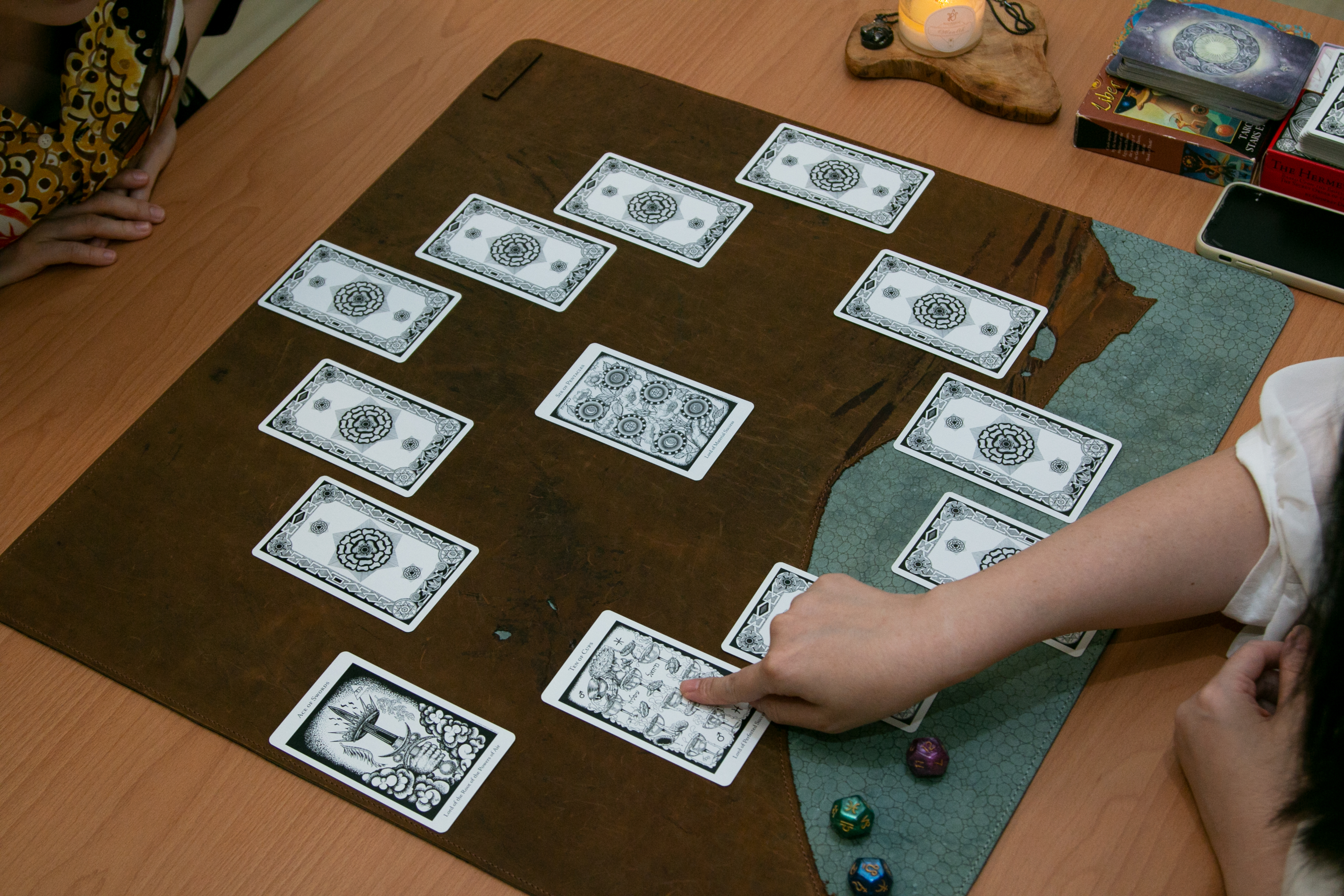 Celine 蒔琳 的訂製品《海岸線塔羅墊》,使用天然皮革邊緣製作的專用塔羅墊。