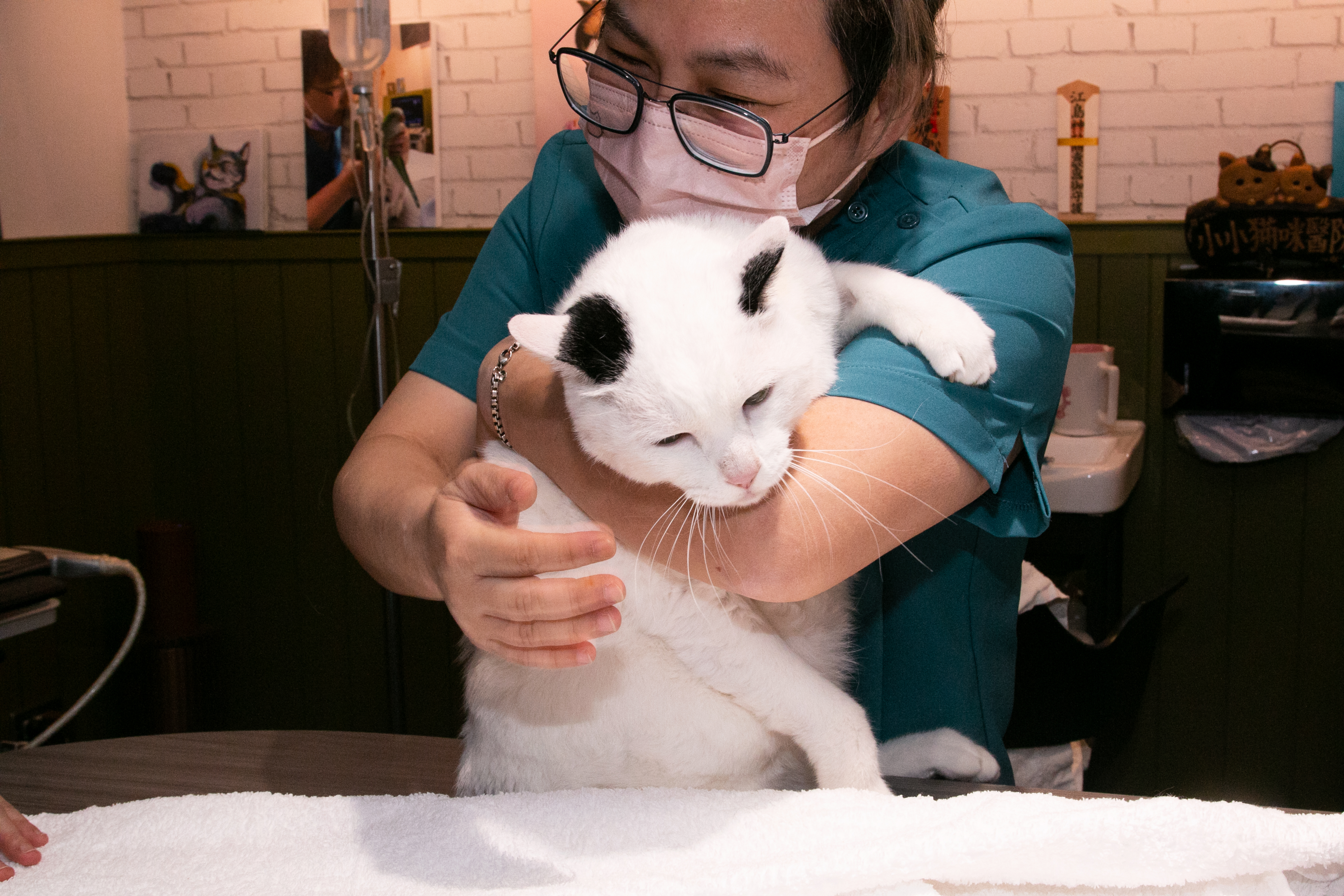 小小貓動物醫院的訂製品,使用符合醫院色系的淺墨綠霧蠟(擦拭蠟)牛革製作。 醫院的同品項器材備有多件,蒙皮並烙印上醫師名稱方便專屬使用。