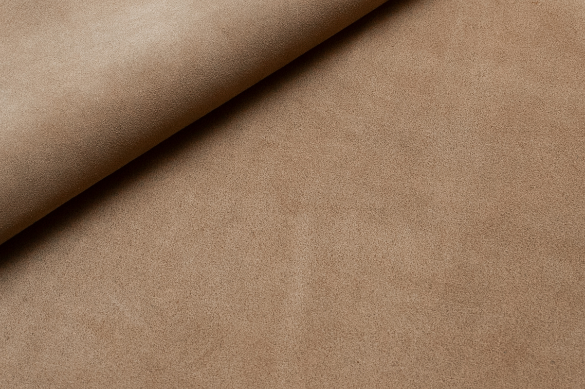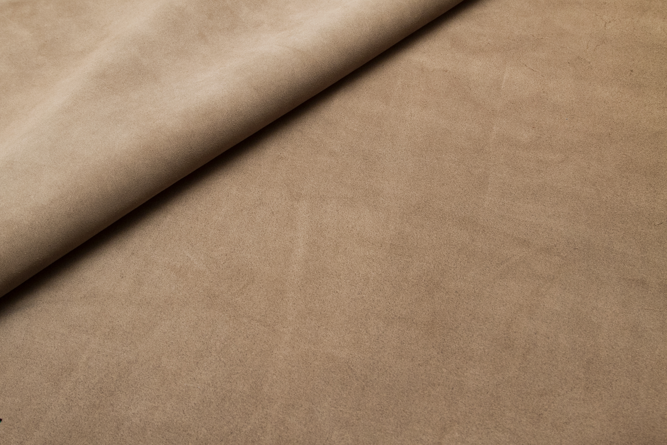 「反毛革 Suede」一般稱作「麂皮」(註1),特色是絨面、軟而富有彈性的質感與手感。與其有相似性質與外觀的「磨砂革 Nubuck」則毛面較短,手感更為細緻。