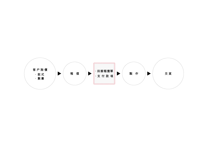 ※ 單件、少件數的客製化訂製案件,如需「打樣」,另報「打樣費」。